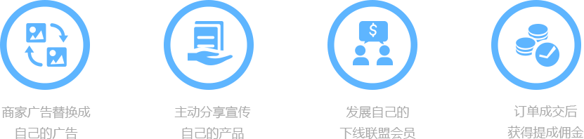 所有通过推广广告链接注册的账号都将自动成为推广者的下线会员。如下线会员购买产品,那么更加可获得产品的佣金