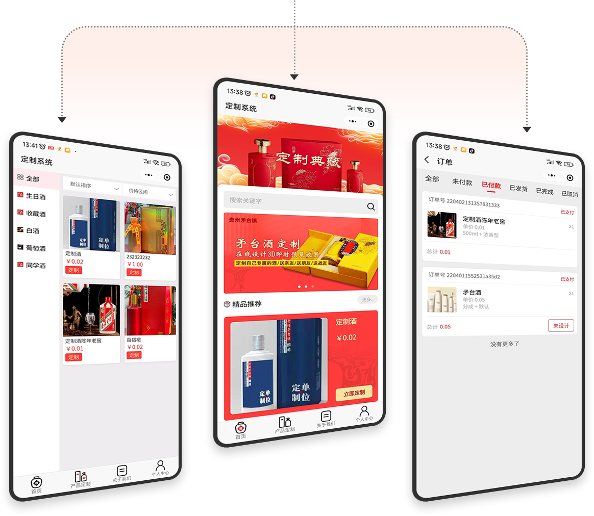 采用小程序开发,让系统入口常驻微信小程序列表,让用户更容易收藏入口微信分享更便捷,手机设计更方便,让用户随时随地进行定制设计