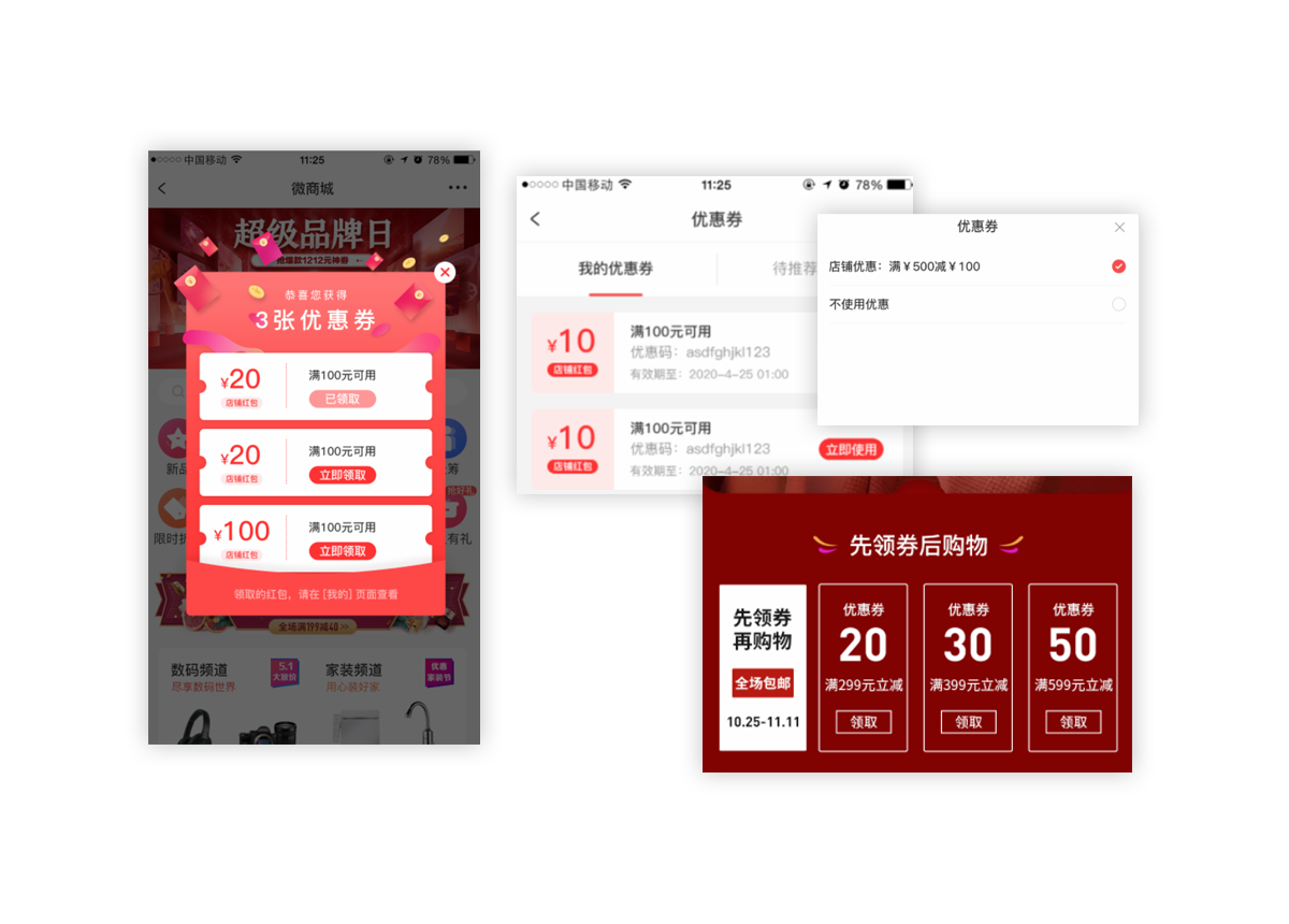 商家可以对优惠券的发送对象进行条件筛选。比如是否为会员、以及相关会员属性