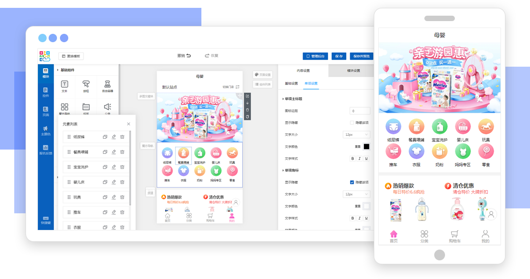 可视化组件随意拖曳,搭建商家自有个性化商城