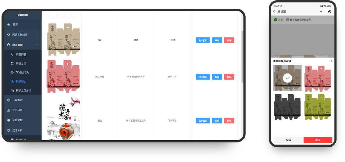 单个3D模型可对应多个包装主题模板,用户使用更便捷,商家维护更简单
