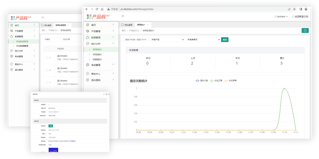 表单数据、状态数据集中管理、支持批量导出,对表单、状态、扫码数据,提供详细分析报表
