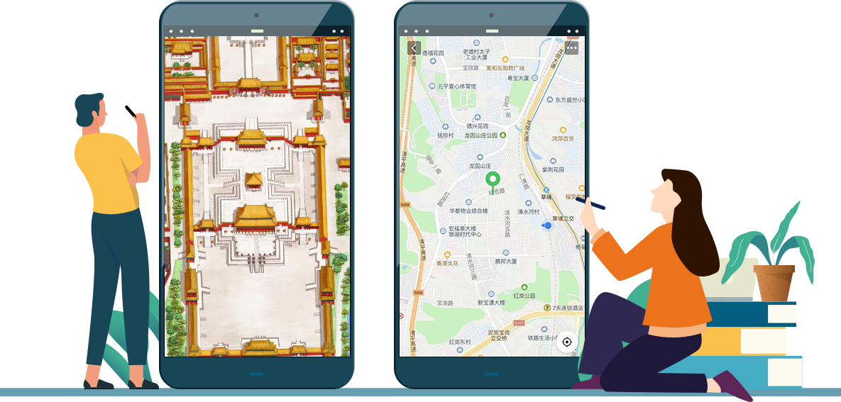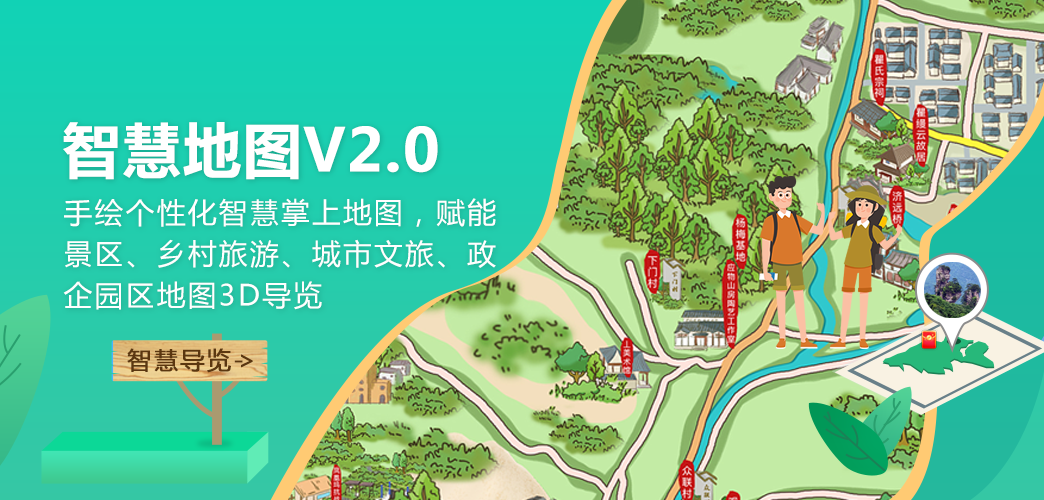 智慧地图以手绘贴图个性化展示、定位、导航为核心,为景区、展会展厅、文化旅游、乡村旅游、地产项目、政府引资、文创招商统筹、高校学府等提供智慧地图服务全场景数字化,赋能驱动地方经济振兴、推进地方商业、新兴旅游产业发展。