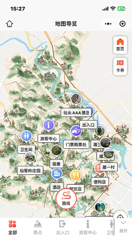 支持景区内多条游览线路规划,多景点打卡式游戏览线路,游览攻略更智能