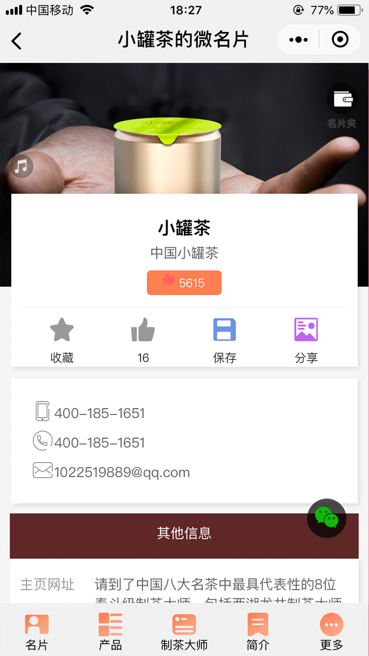 公司新闻动态、个人简介,让客户通过名片充分了解公司文化、销售的专业履历。