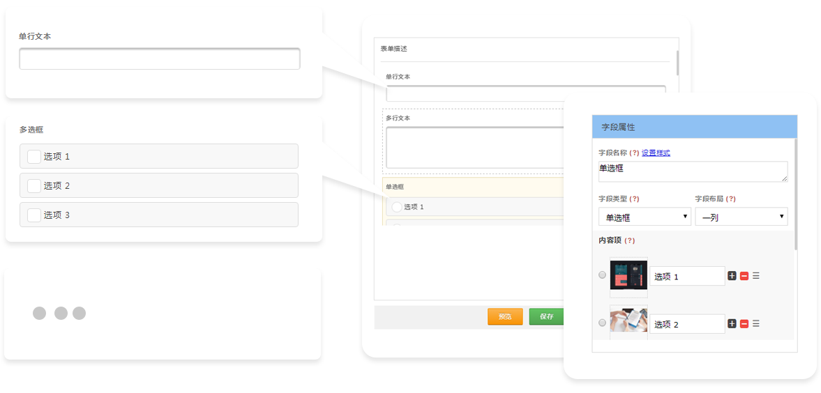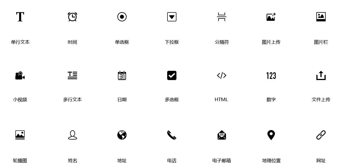 • 21种题型字段选项功能