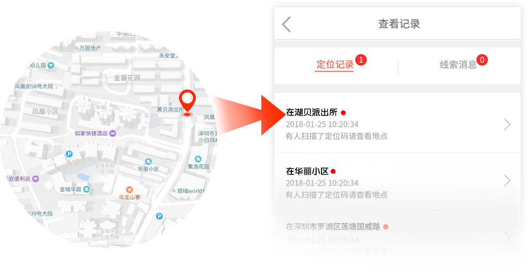扫码后系统迅速定位发送至系统并通知其家人