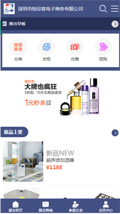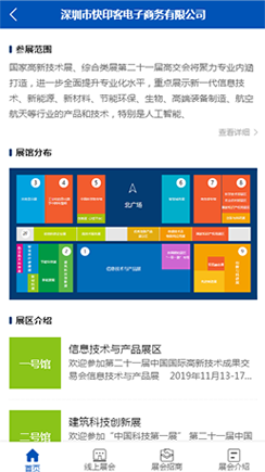 每个参展商独立商铺, 展示产品,可在线下单及主营产品、企业介绍